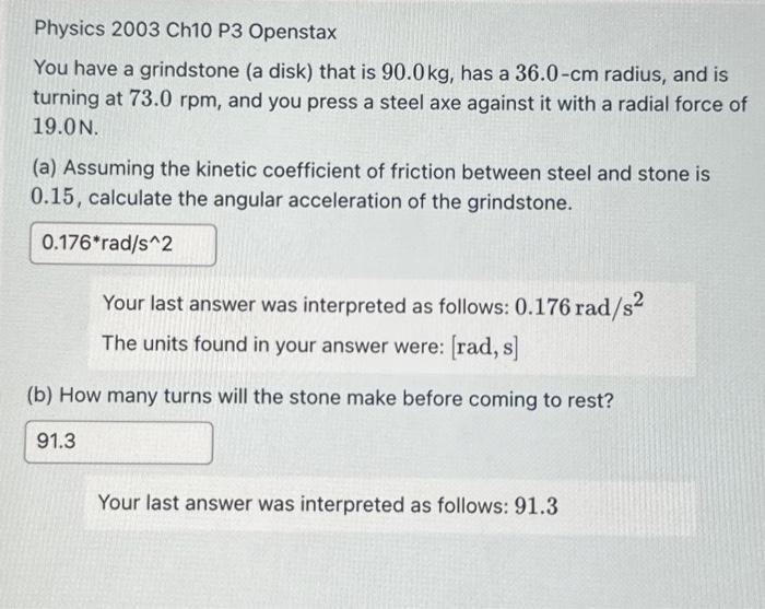 Solved Physics 2003 Ch10 P3 Openstax You have a grindstone Chegg Very well made.