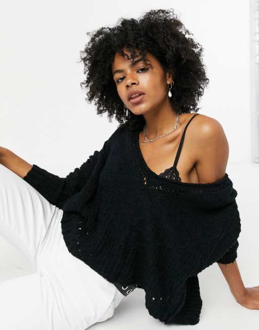 Free People Seashell crochet knit jumper in black ASOS Very well made.