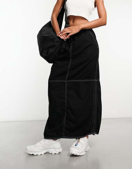Bershka contrast stitch cargo maxi skirt in black Very well made.